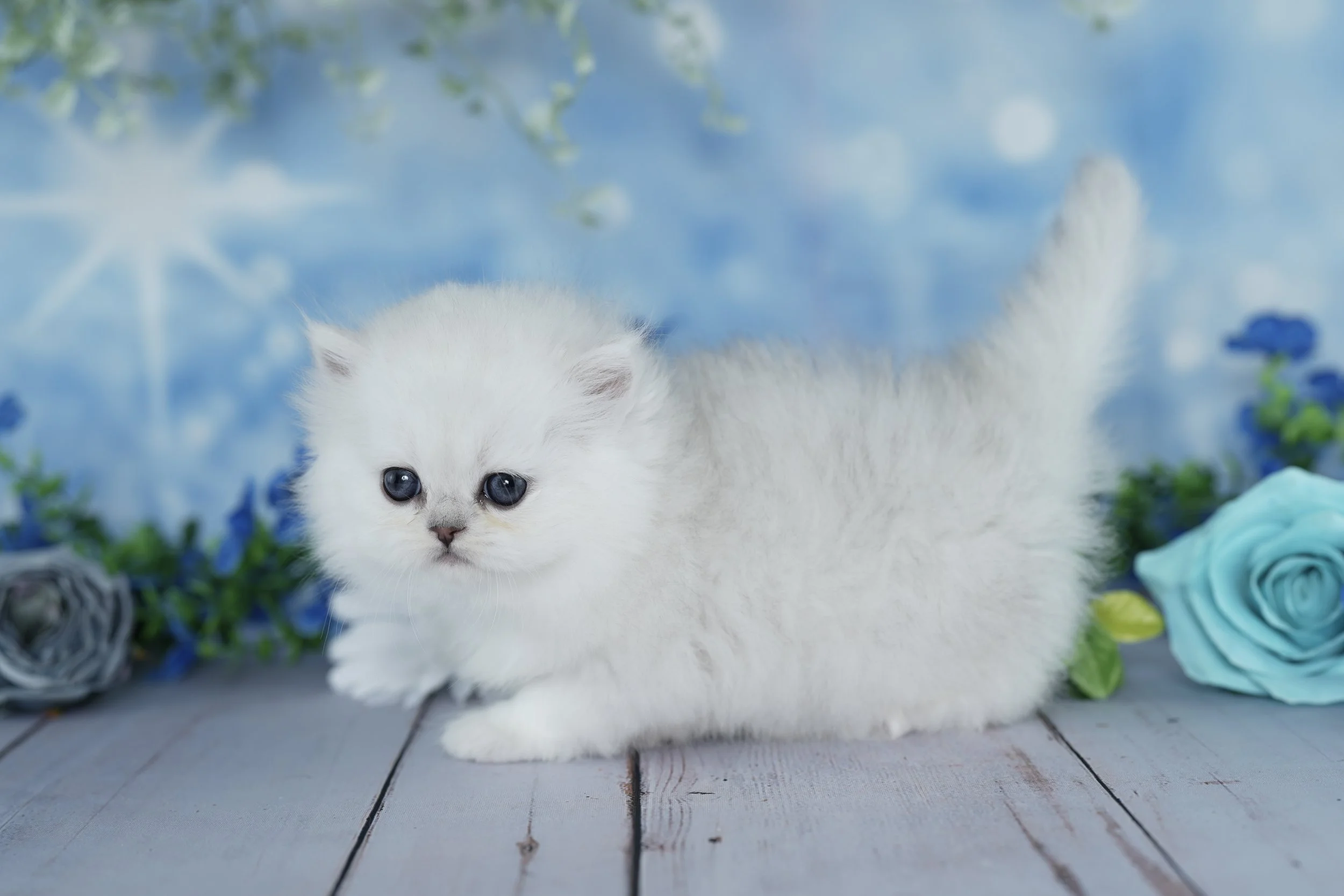 Meet Christina- Our little Snow Angel. Christina is a dazzling Chinchilla silver persian baby with a coat as bright as snow. She’s dainty, gentle, and endlessly sweet- the kind of kitten who loves to be close and brings peace wherever she goes. Her plush coat glows in every light, making her look like a tiny snowflake come to life. Christina is the essence of Persian beauty.