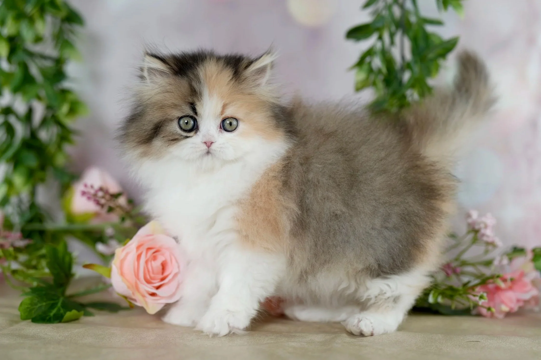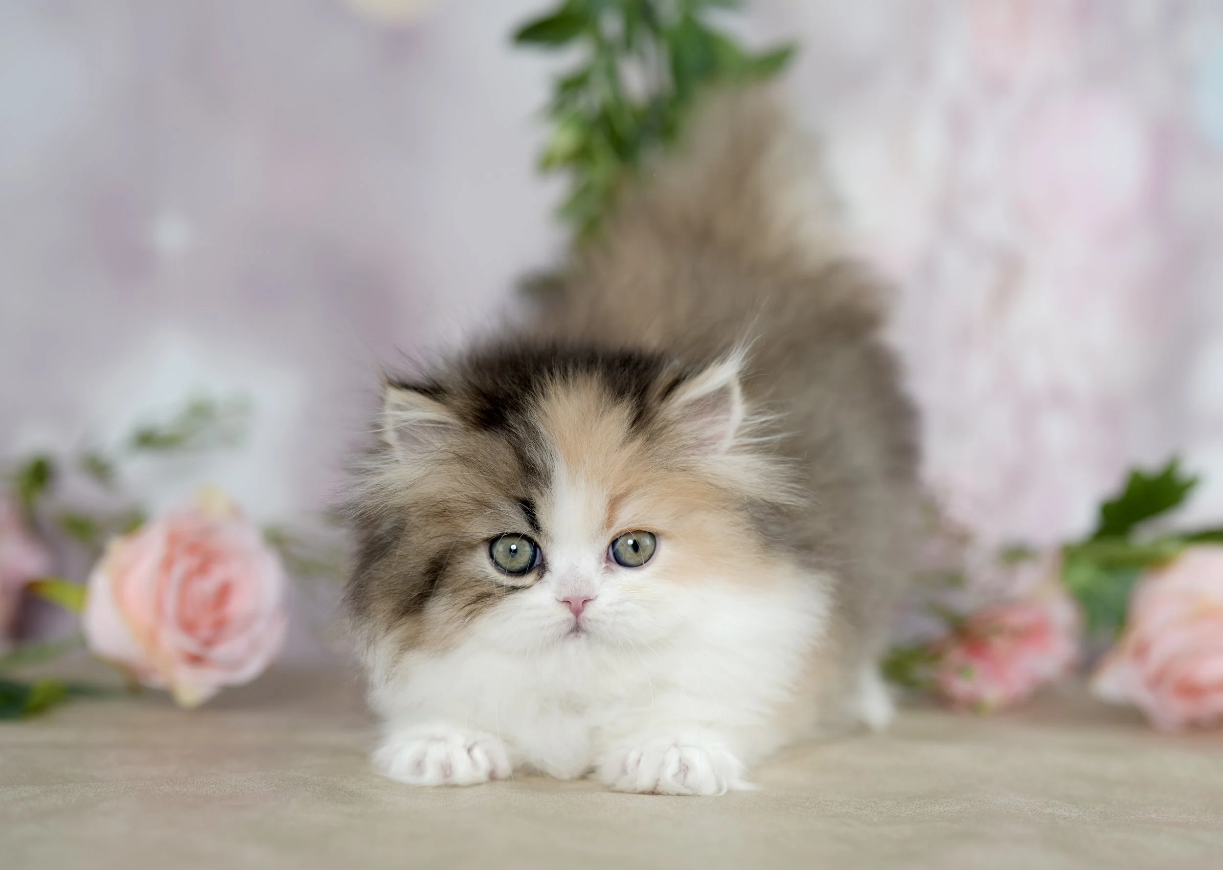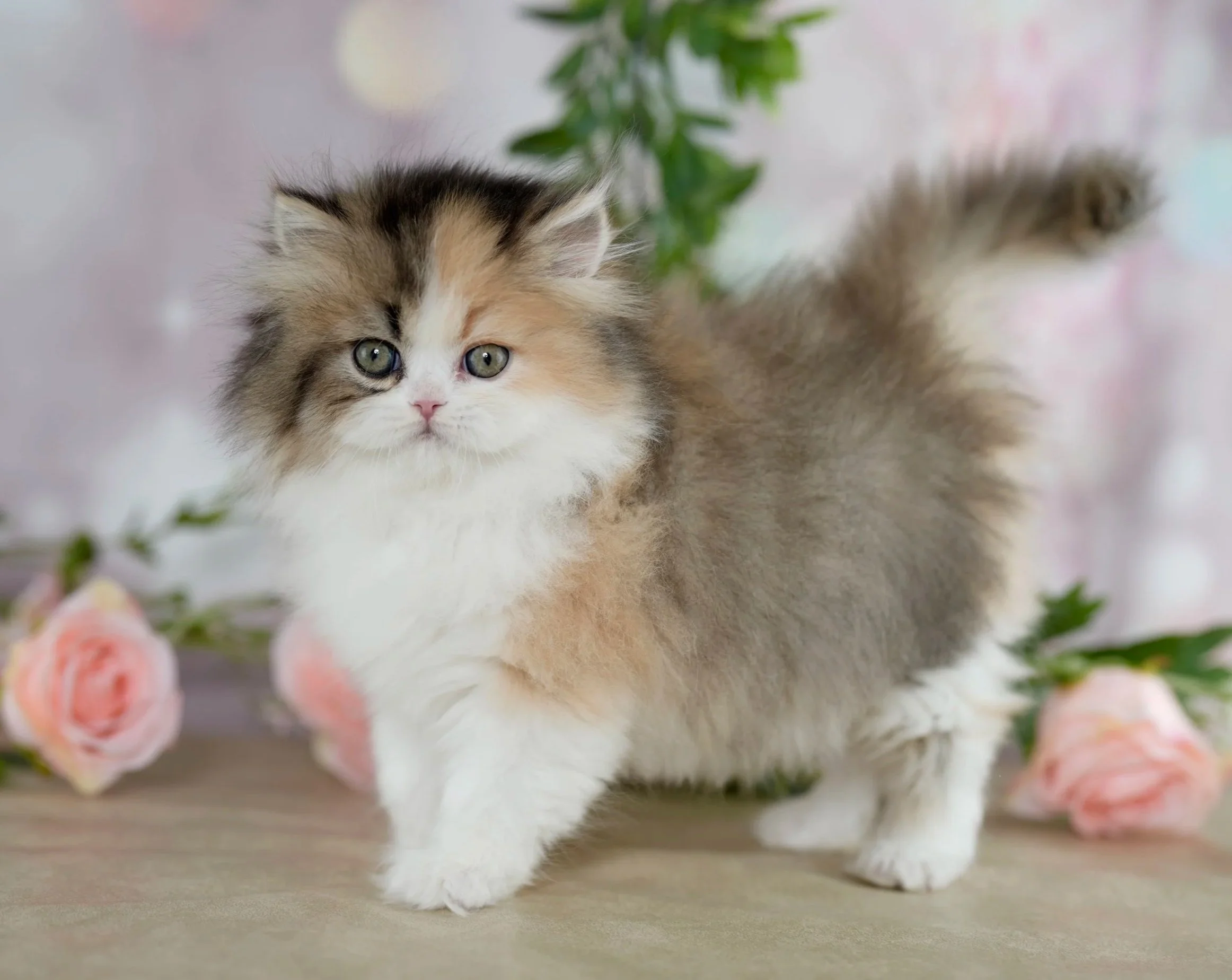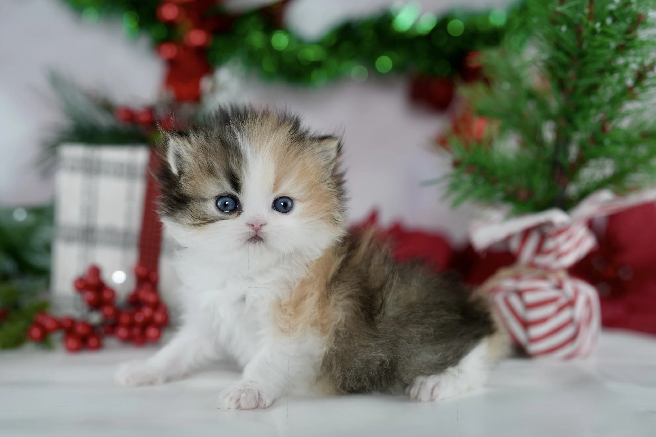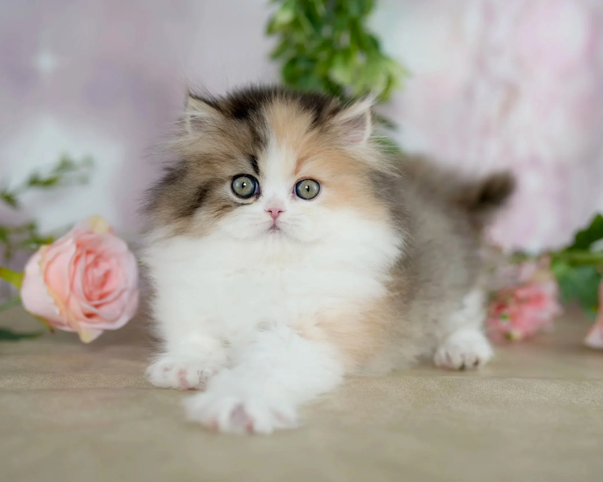 Meet Felicity- Meet this precious calico princess! This stunning baby doll features a perfectly balanced calico tri-colored coat, round doll eyes, and a sweet doll face expression. She will have a huge, plush, colorful coat. She has a calm, sweet demeanor, and exquisite type making her a true showstopper and a perfect addition to a loving home. She is an absolute sweetheart and purrs constantly! She is truly one of the most perfect calicos we have seen to date!