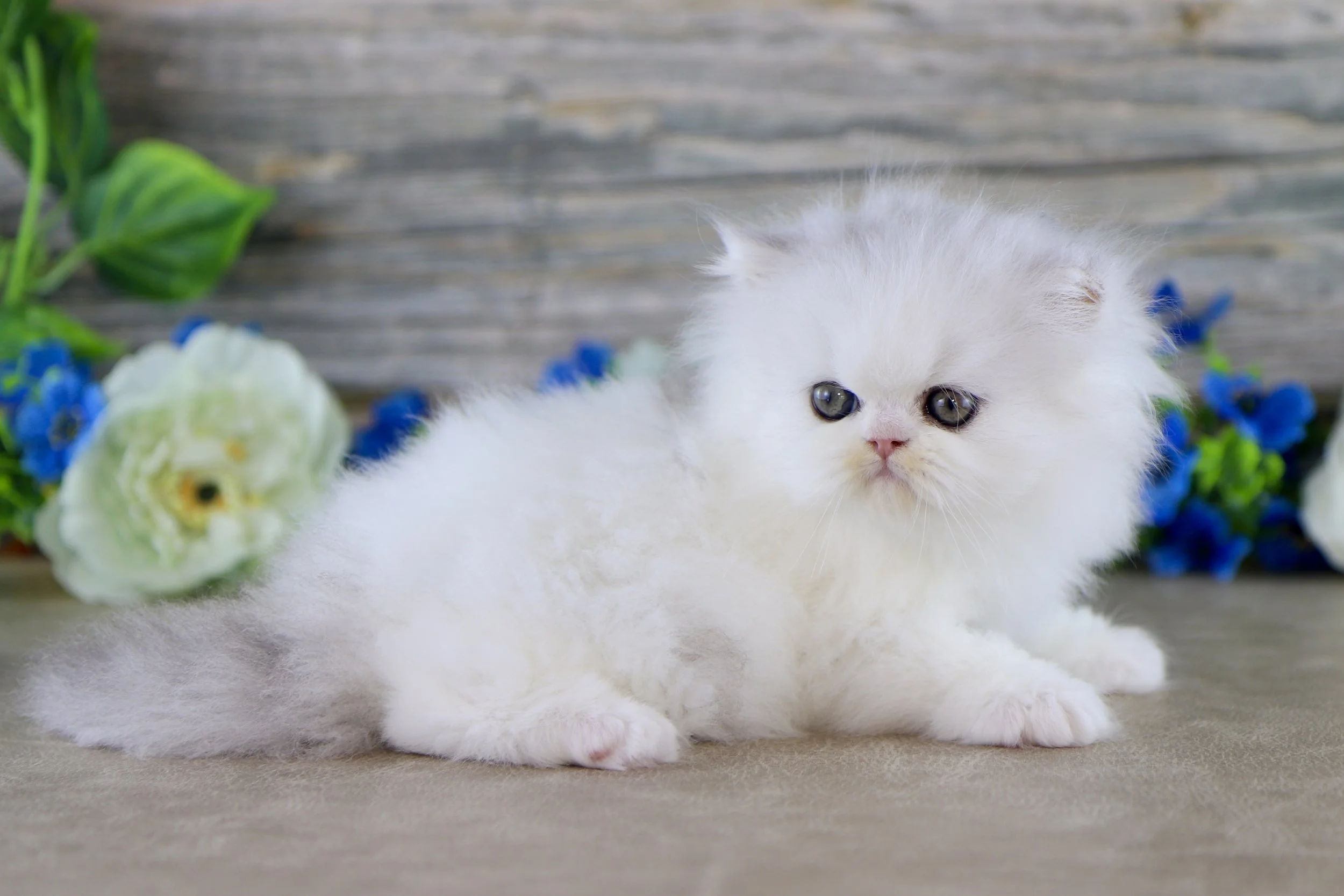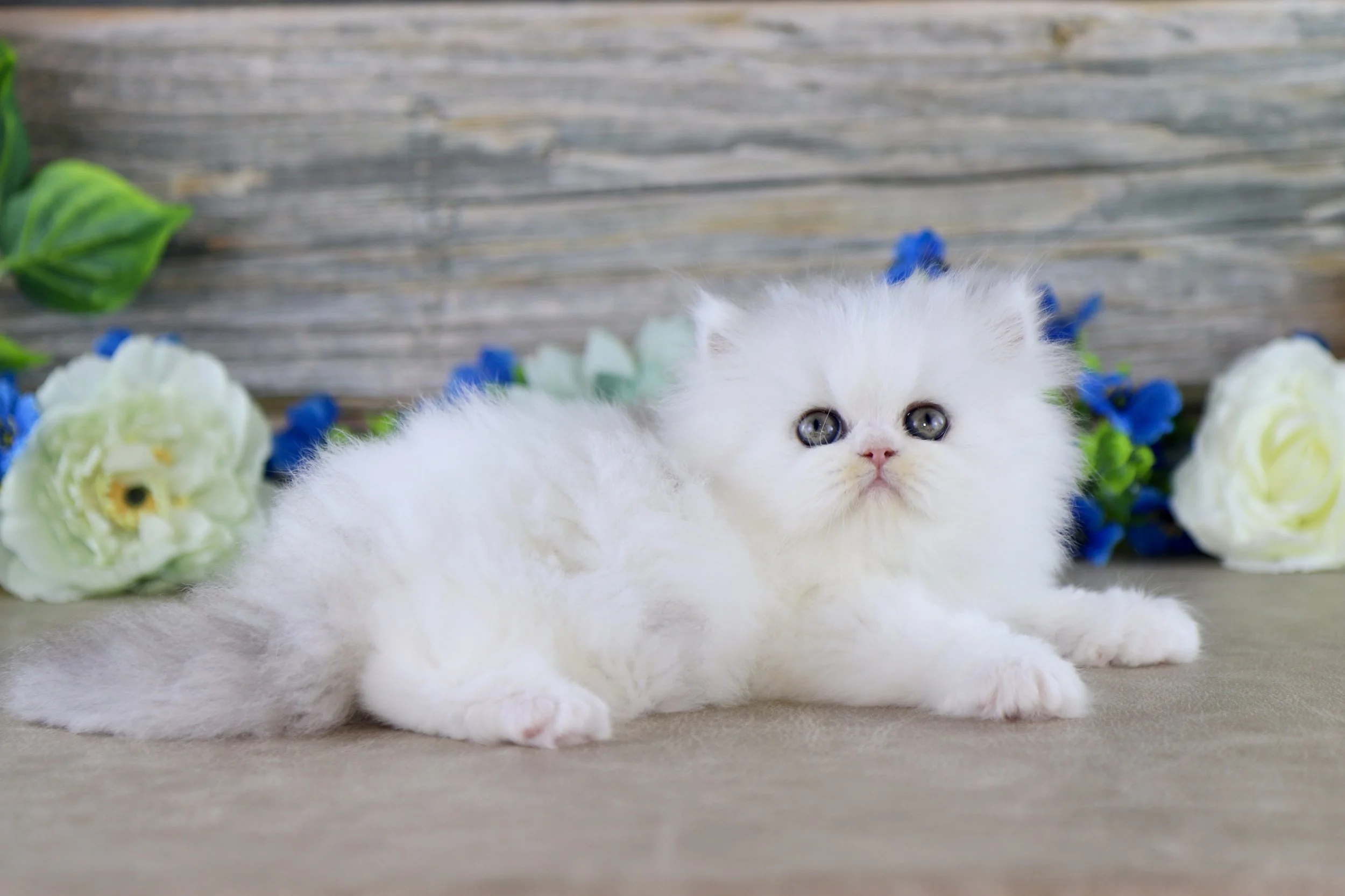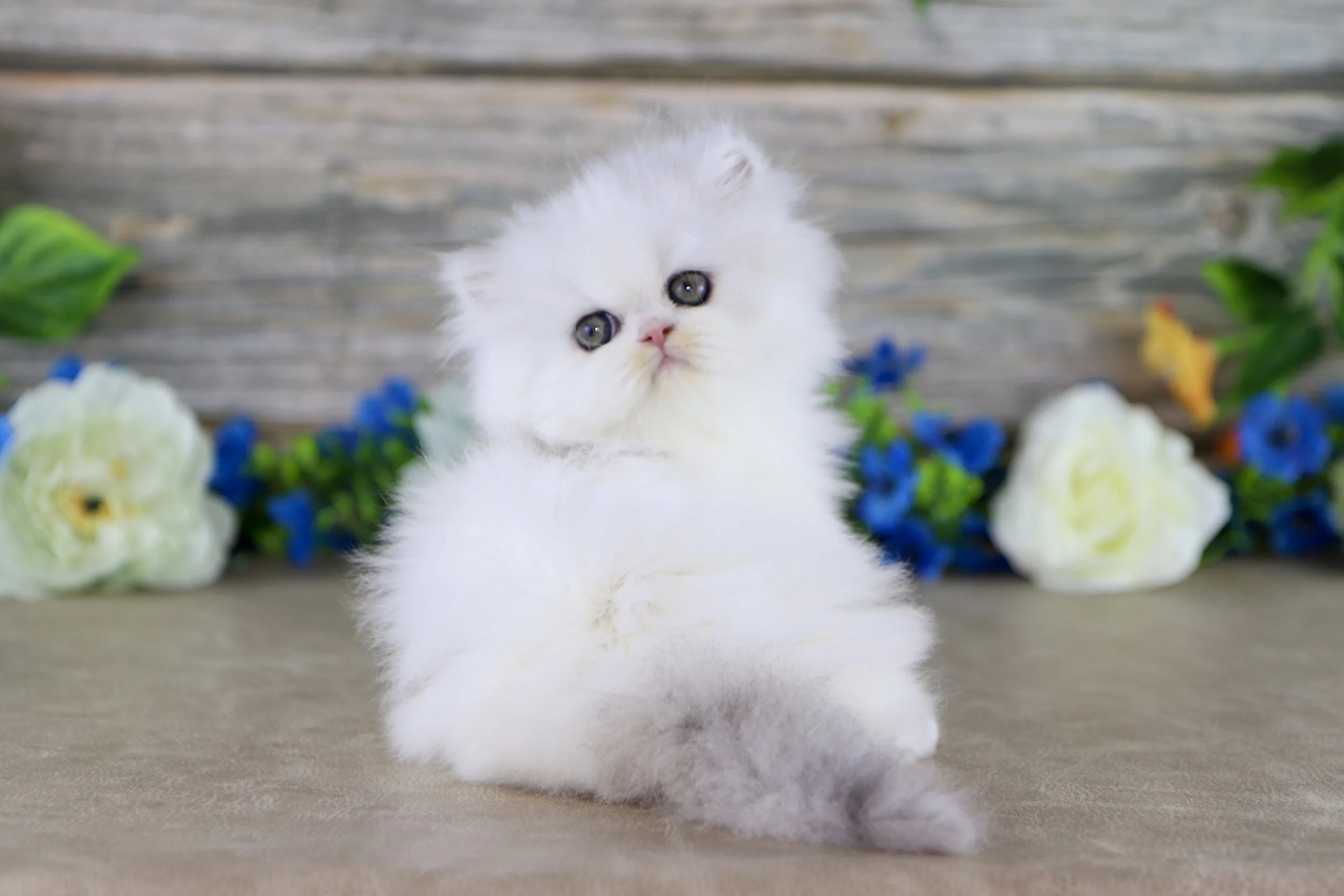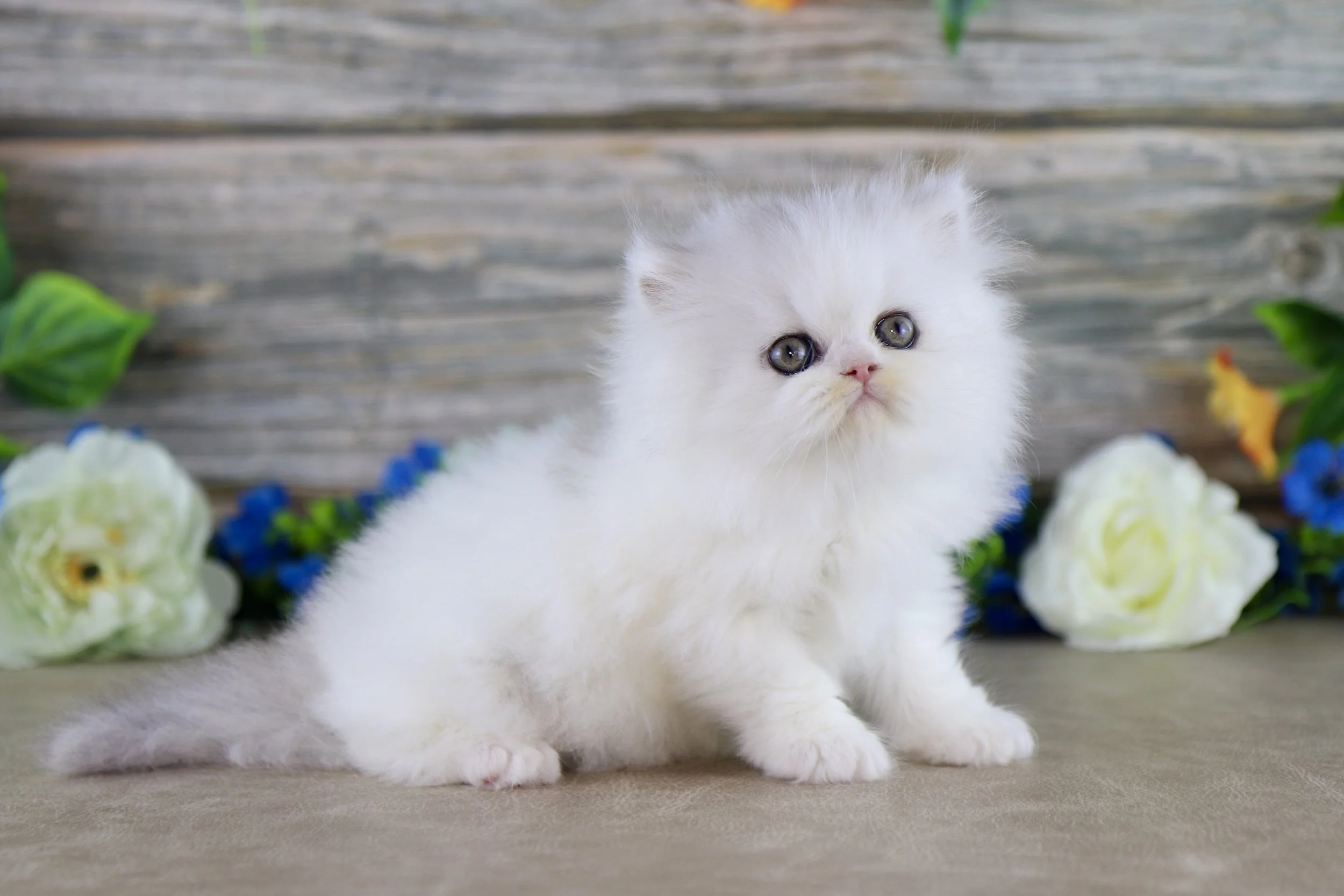 Meet our ultra fluffy silver bicolor baby boy! With his soft cloud like coat, wide sparkling eyes, and the sweetest expression, he’s the picture of charm! Gentle, cuddly, and absolutely gorgeous-this rare treasure is ready to melt hearts and bring endless joy to his forever home.