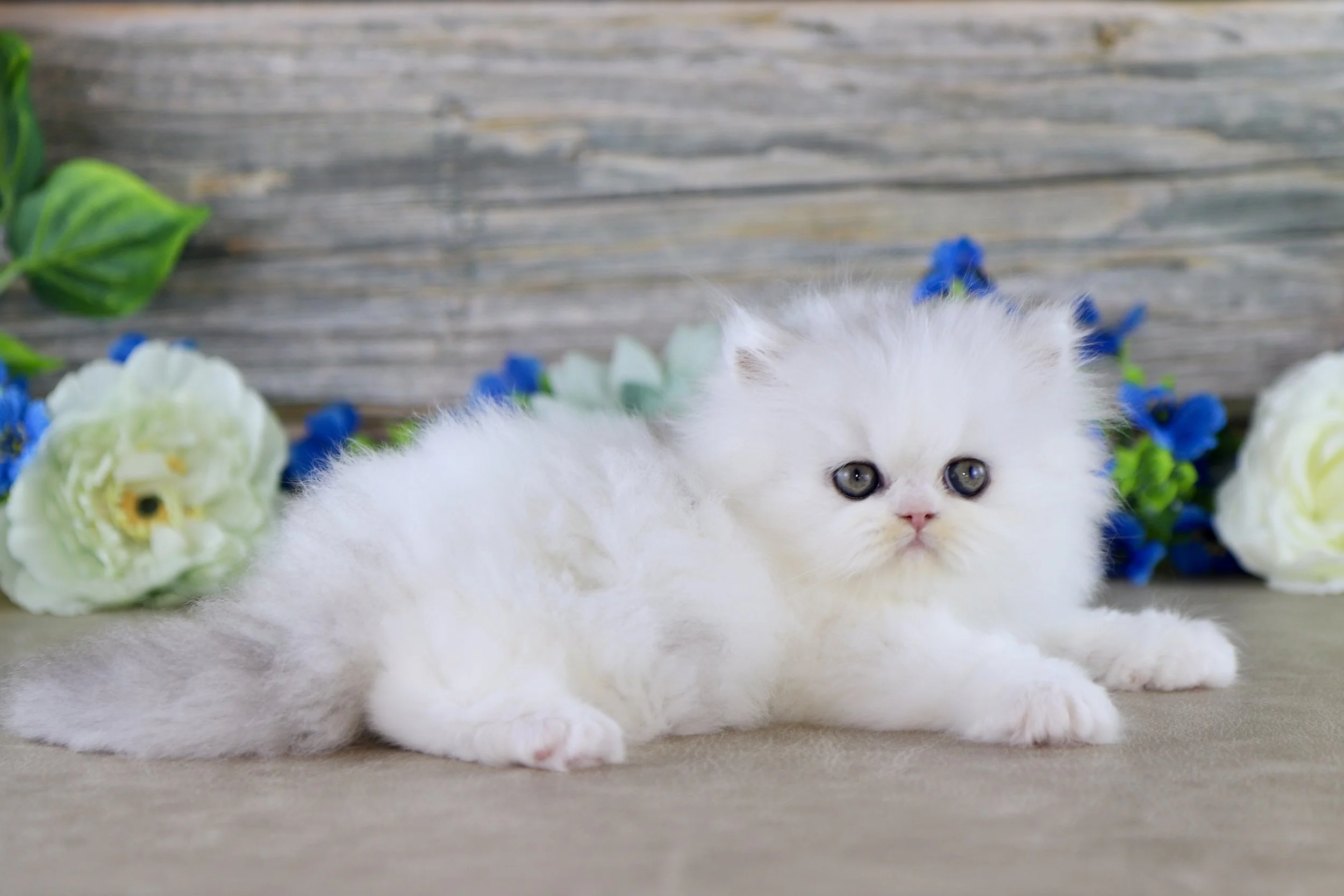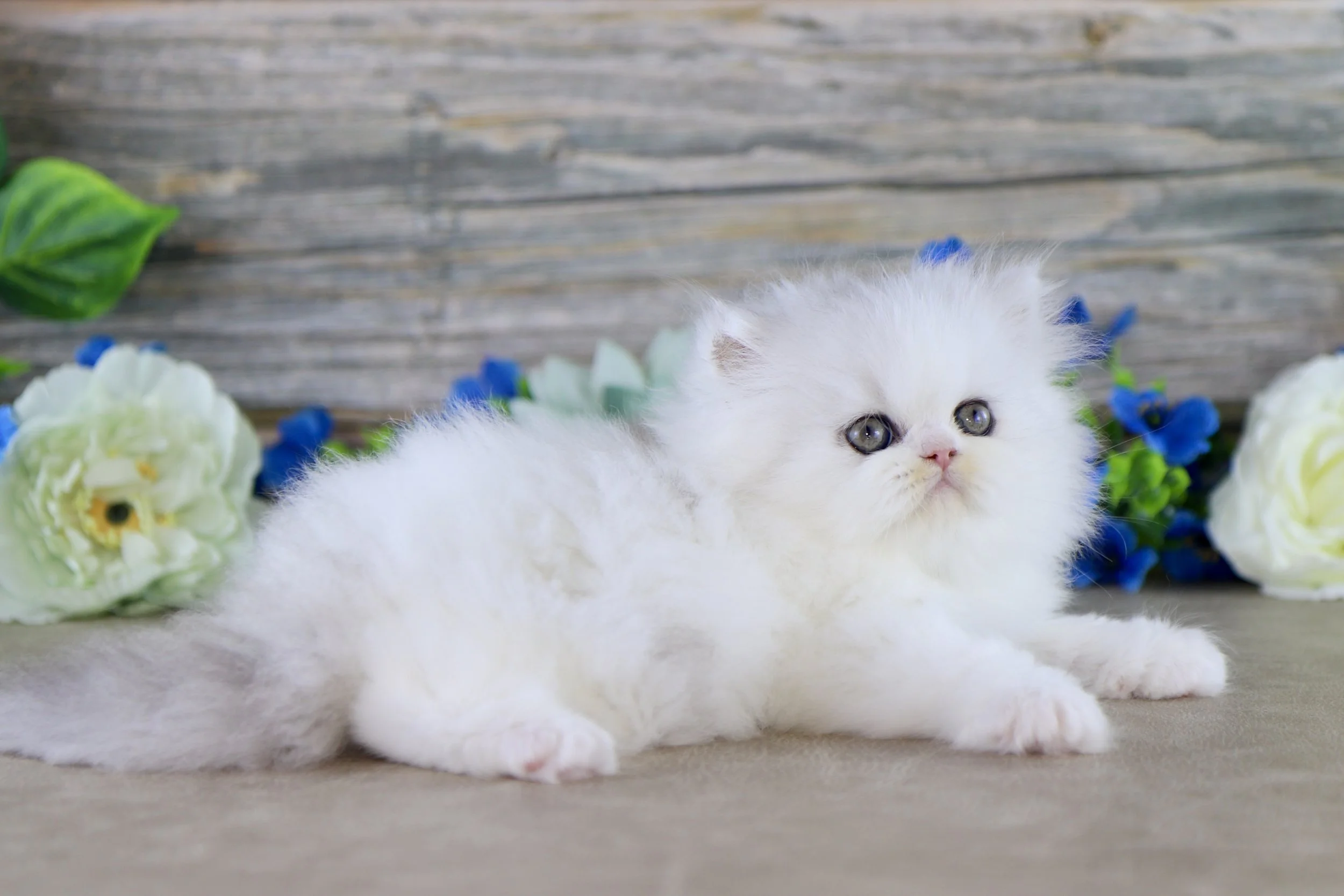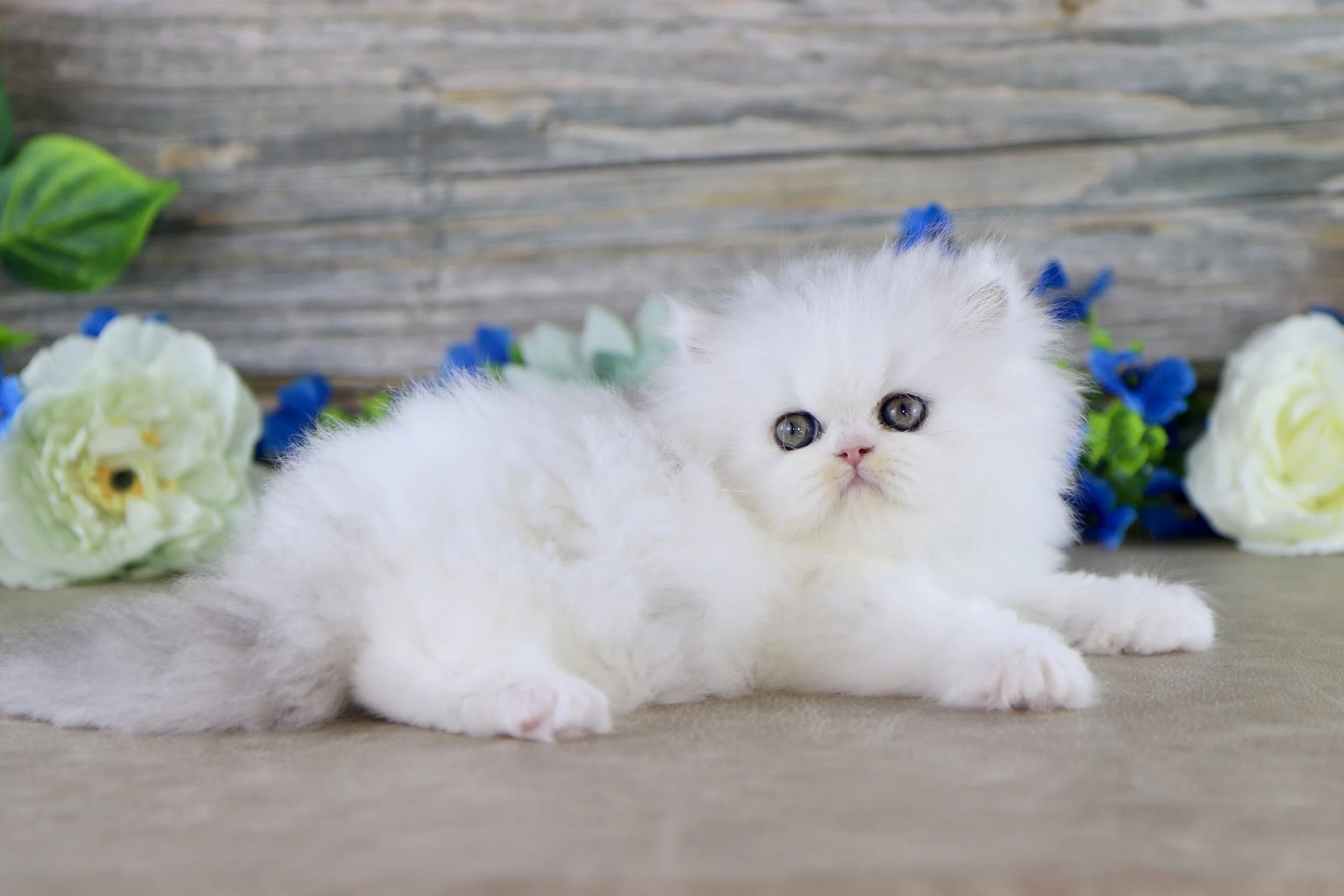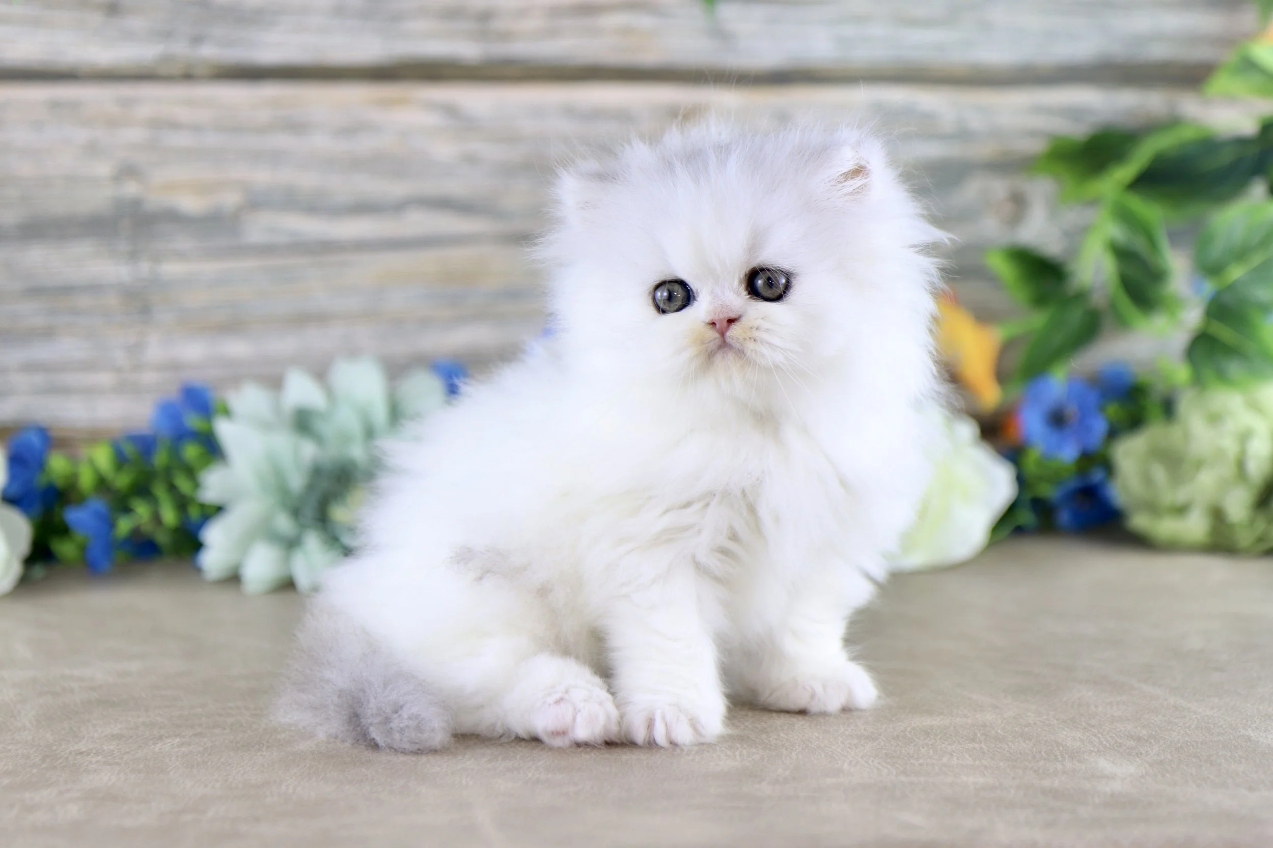 Meet our ultra fluffy silver bicolor baby boy! With his soft cloud like coat, wide sparkling eyes, and the sweetest expression, he’s the picture of charm! Gentle, cuddly, and absolutely gorgeous-this rare treasure is ready to melt hearts and bring endless joy to his forever home.