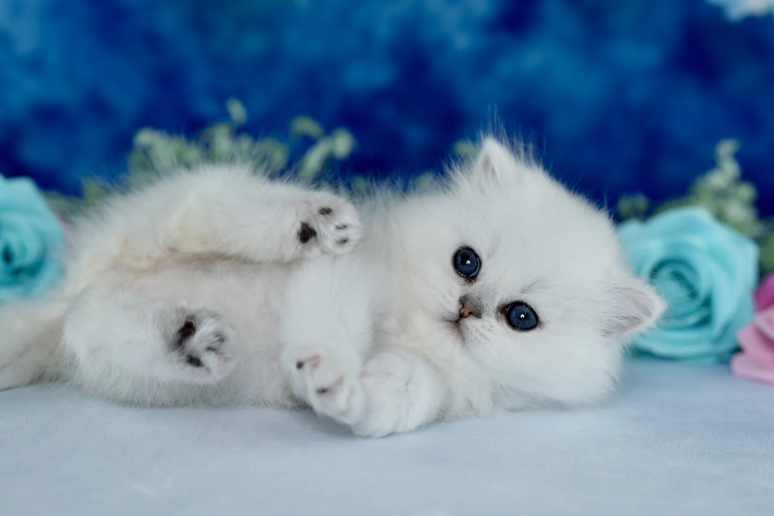 ‘Damien’- AVAILABLE $4,500 | CHINCHILLA SILVER PERSIAN MALE | BORN 12/16/25 | DREAM X ROSSI