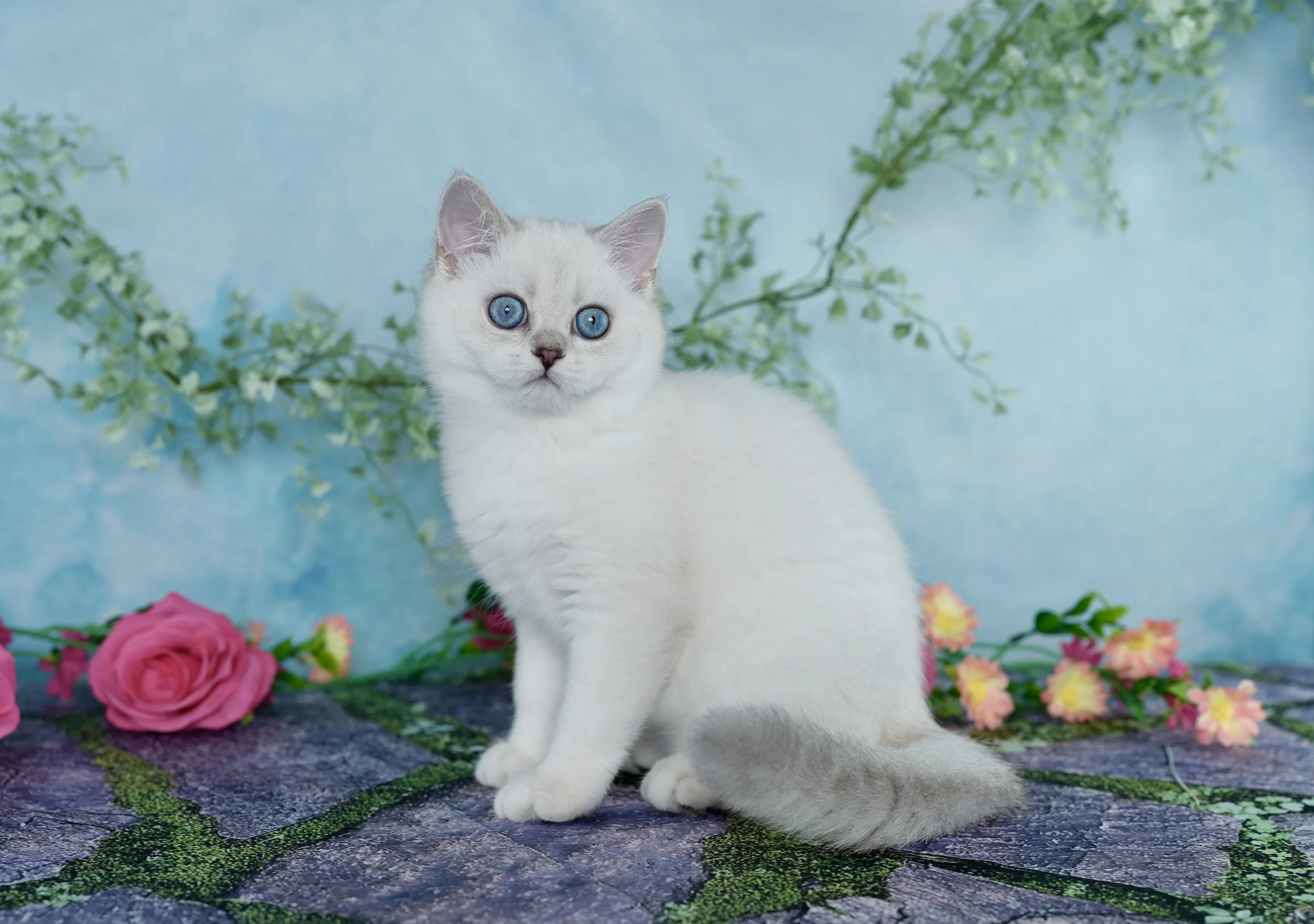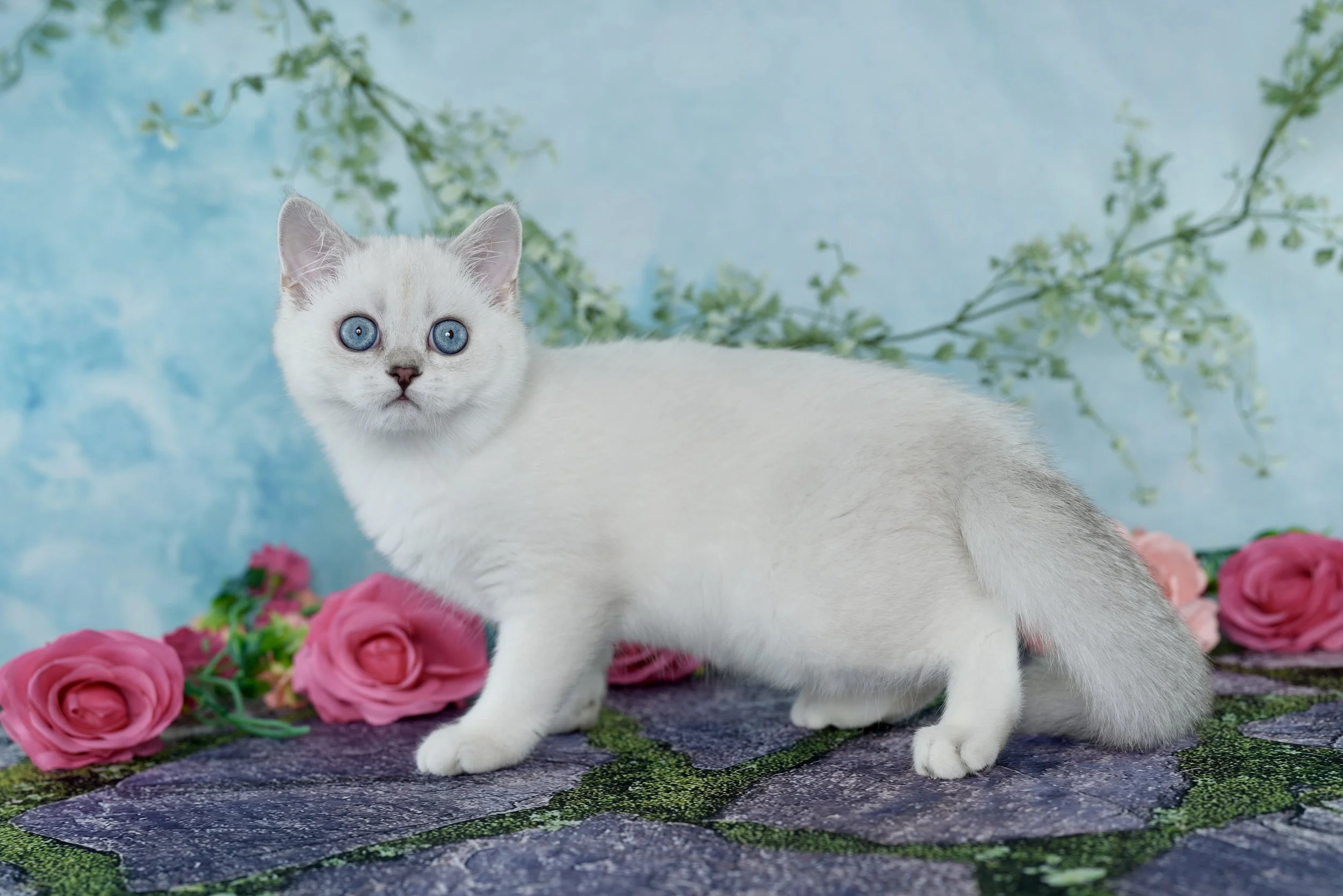 Meet Tara, a gorgeous Chinchilla Silver Point Exotic Shorthair Persian born June 9, 2025. Known as “the lazy man’s Persian,” Tara’s plush, low-maintenance coat pairs beautifully with her soft silver accents, giving her a timeless elegance. She is calm, affectionate, and irresistibly charming, happiest when lounging nearby or enjoying gentle affection. Playful in bursts but always laid-back at heart, Tara is the perfect balance of companionship and ease. With her sweet temperament and striking beauty, she is ready to bring warmth, comfort, and serenity into her forever home.