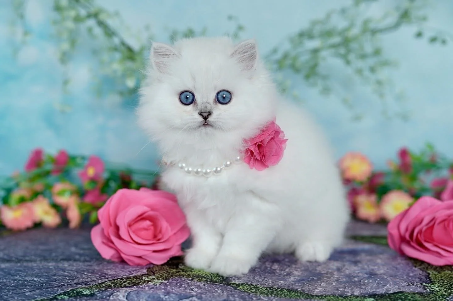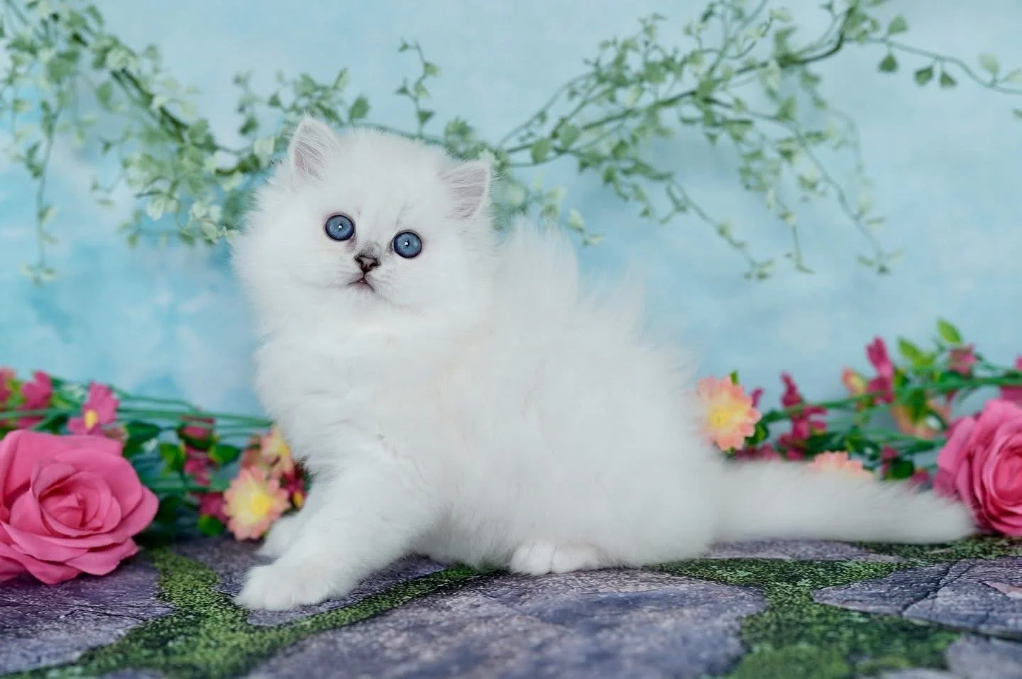 Chinchilla silver points (AKA chinchilla point Persians) are truly mesmerizing! Their snowy white coats are kissed with delicate silver points on thier nose, ears, and tail creating a stunning contrast. These kittens have forever blue eyes- most developing into breathtaking deep sapphire blue tones, rather than pale washed out blue seen in regular points. With their perfect black nose liner accent and doll like expression, they embody rare beauty, elegance, and charm that is simply unforgettable.