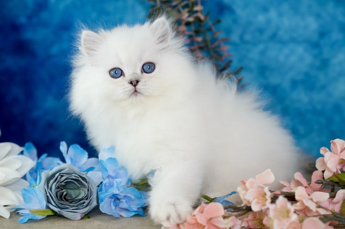 Ultra-rare silver chinchilla point persian kittens (the blue eyed silver!)